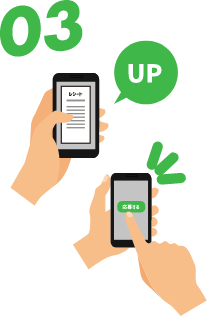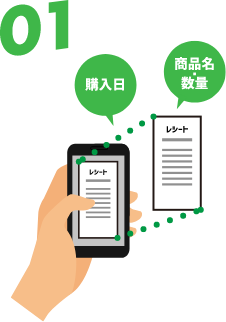 対象商品をご購入いただいたレシートを「購入日」「商品名」「購入数量」がわかるように写真を撮ります。